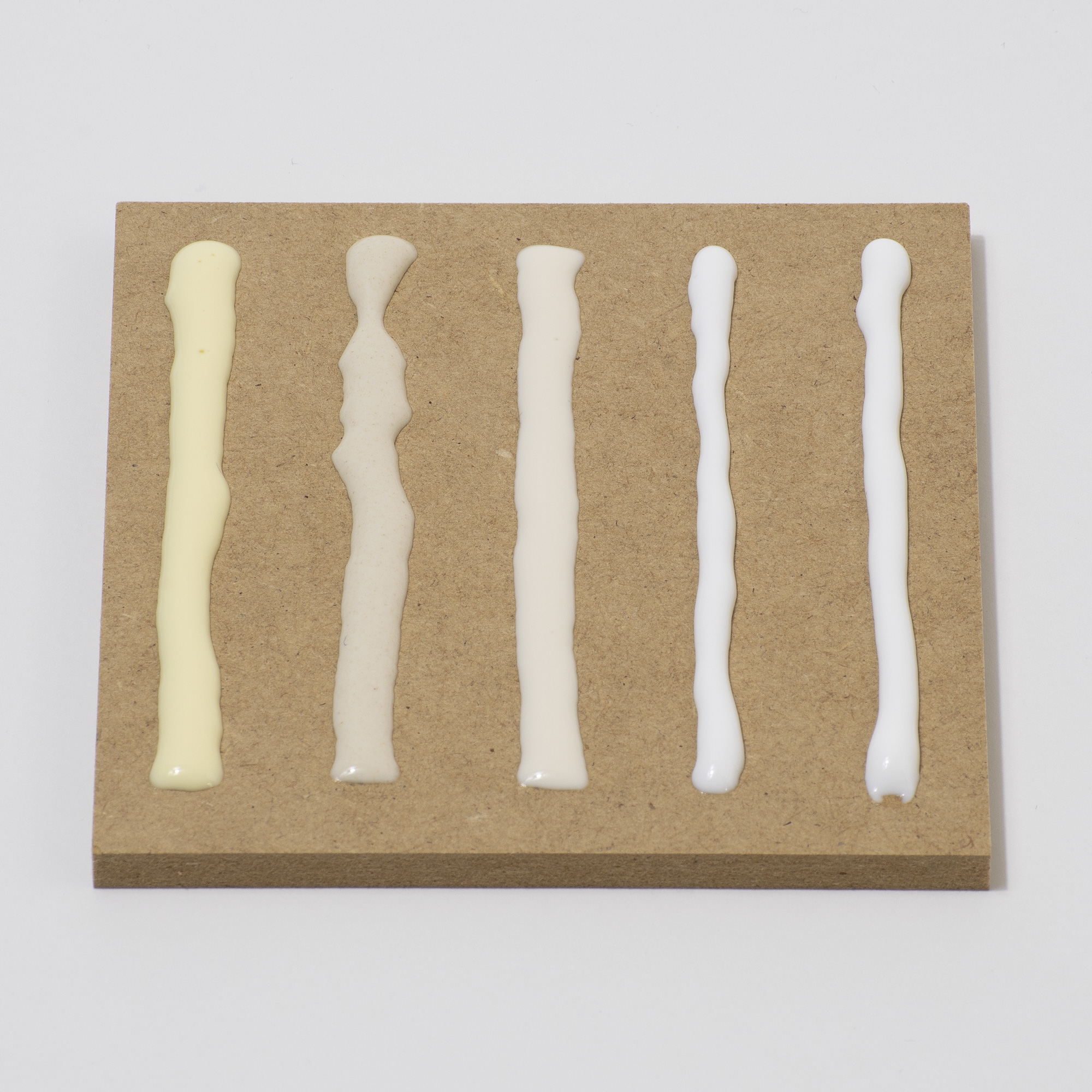 そういう場合は薄く塗り伸ばせば多少は垂れにくくなります。逆にフラッシュマウントの板材の貼り付けなど大面積を接着する場合は、粘度が低いほうが塗り伸ばしやすいので、何種類か用意して用途によって使い分けるのも良いでしょう。